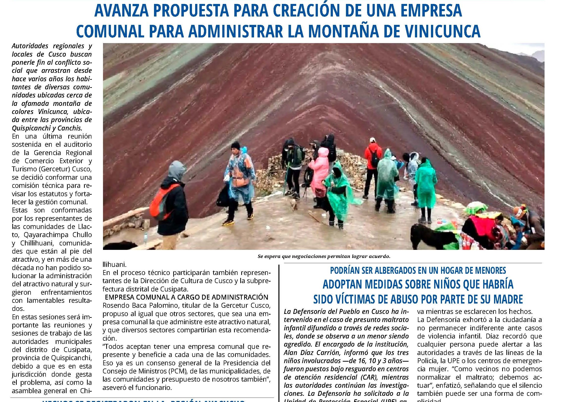 Autoridades regionales y locales de Cusco buscan ponerle fin al conflicto social que arrastran desde hace varios años los habitantes de diversas comunidades ubicadas cerca de la afamada montaña de colores Vinicunca, ubicada entre las provincias de Quispicanchi y Canchis.