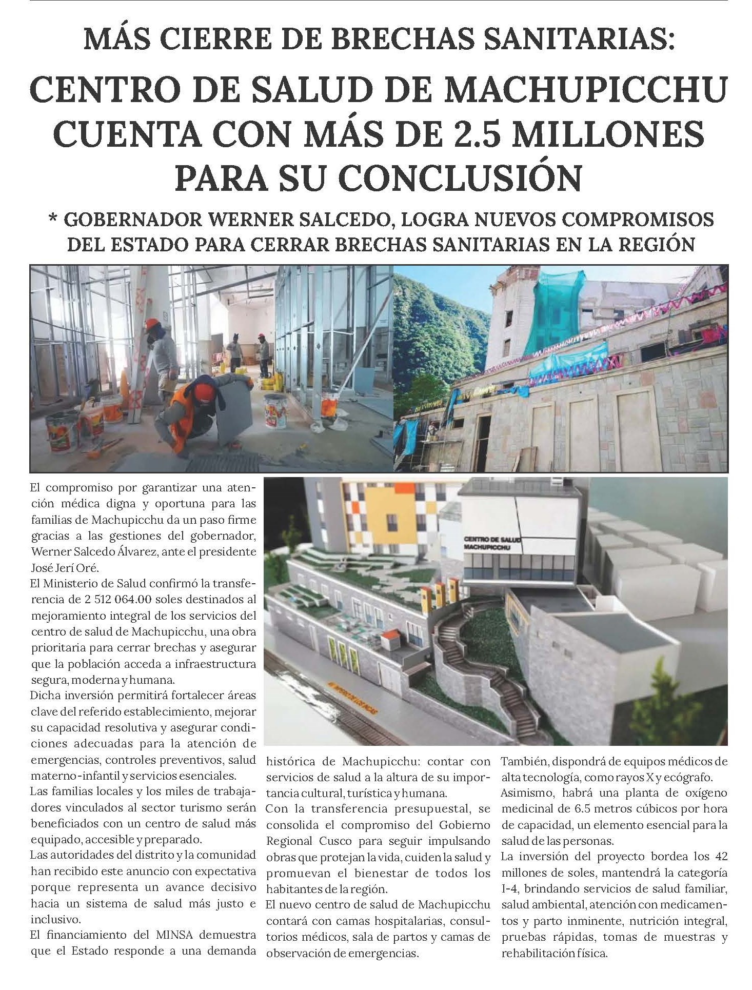 (…) Dicha inversión permitirá fortalecer áreas clave del referido establecimiento, mejorar su capacidad resolutiva y asegurar condiciones adecuadas para la atención de emergencias, controles preventivos, salud materno-infantil y servicios esenciales.