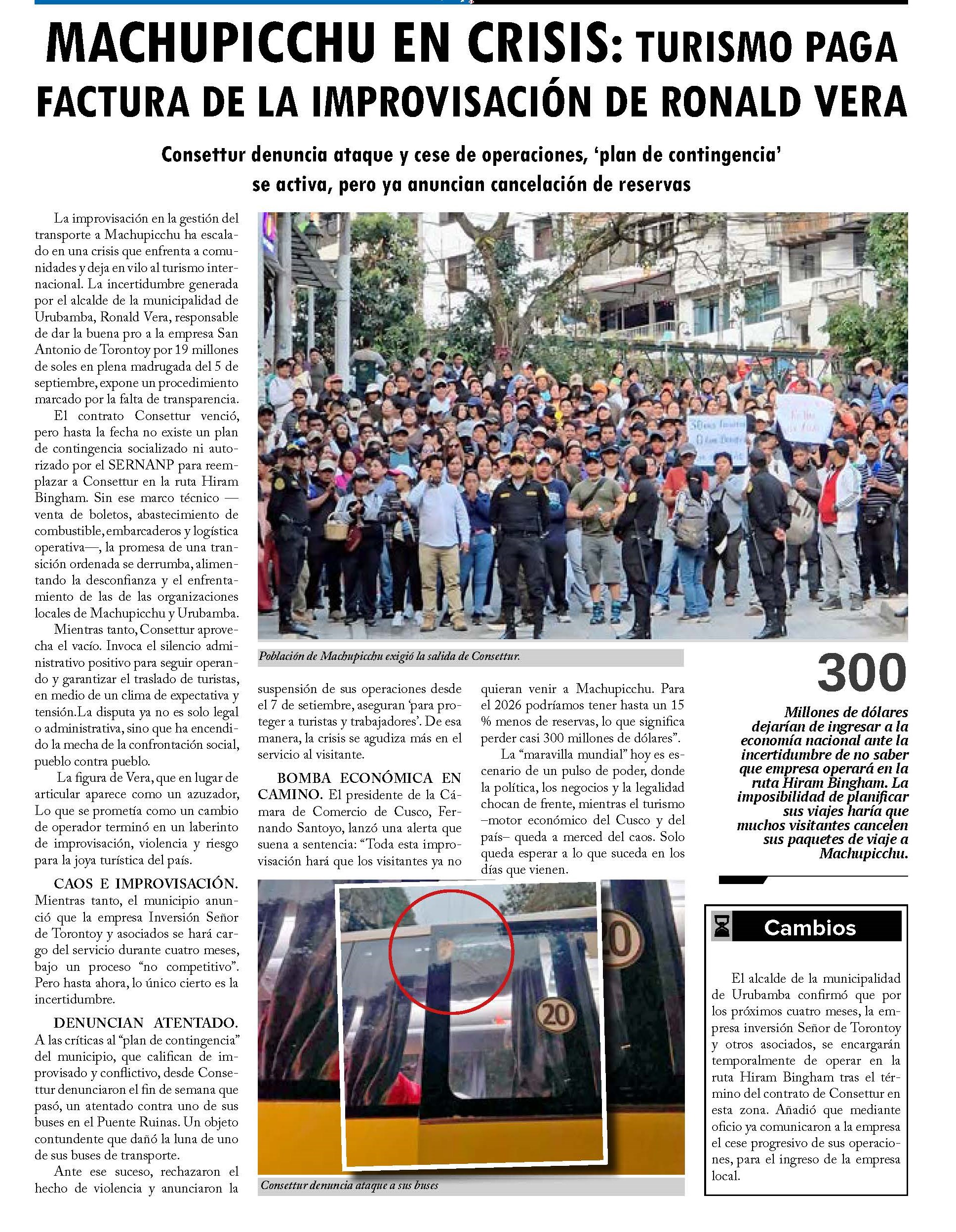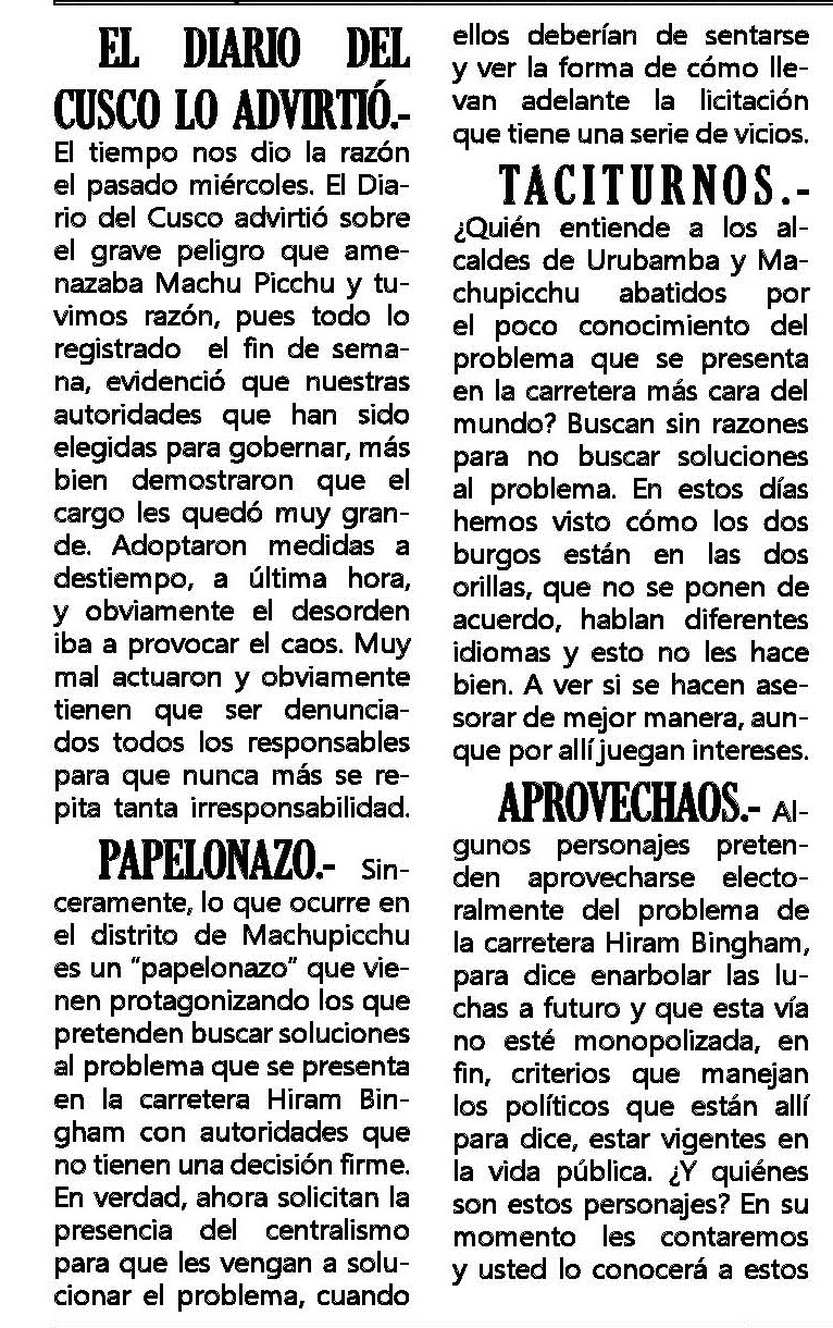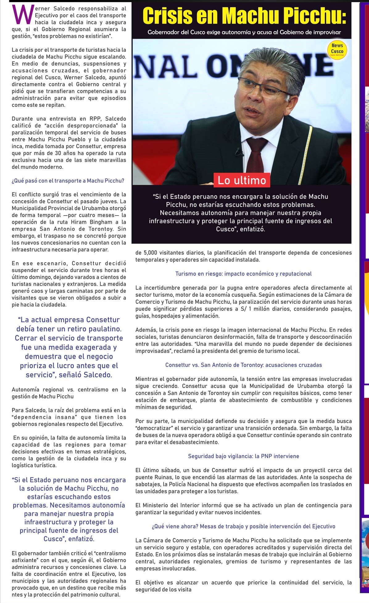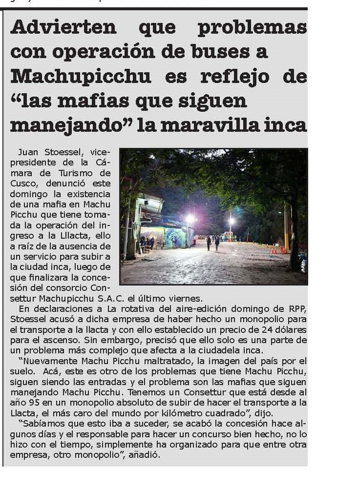 Frente a los problemas que se registran por la administración de la ruta Hiram Bingham, Alfredo Cornejo, representante del Frente de Defensa del Patrimonio Cultural del Turismo Sostenible del Cusco, señaló que hay intereses de ‘grupos de poder’ que quieren tomar el control de la vía.