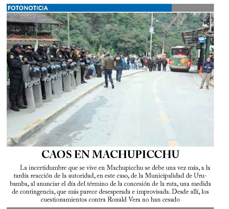 DECLARATORIA DE EMERGENCIA EN MACHUPICCHU SERÍA PERJUDICIAL