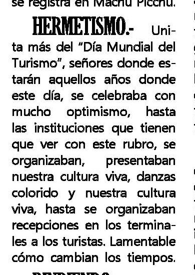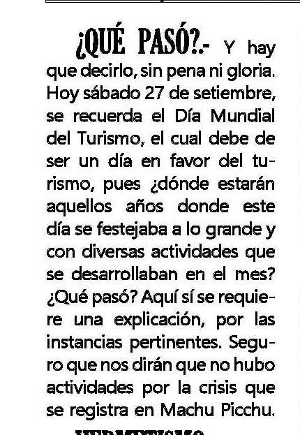Y hay que decirlo, sin pena ni gloria. Hoy sábado 27 de setiembre, se recuerda el Día Mundial del Turismo,¿ dónde estarán aquellos años donde este día se festejaba a lo grande y con diversas actividades que se desarrollaban en el mes? .