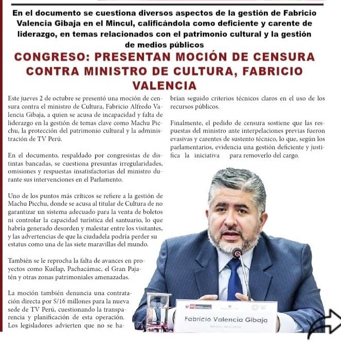 GOBIERNOS REGIONALES EXIGEN CENSURA DEL MINISTRO DE CULTURA