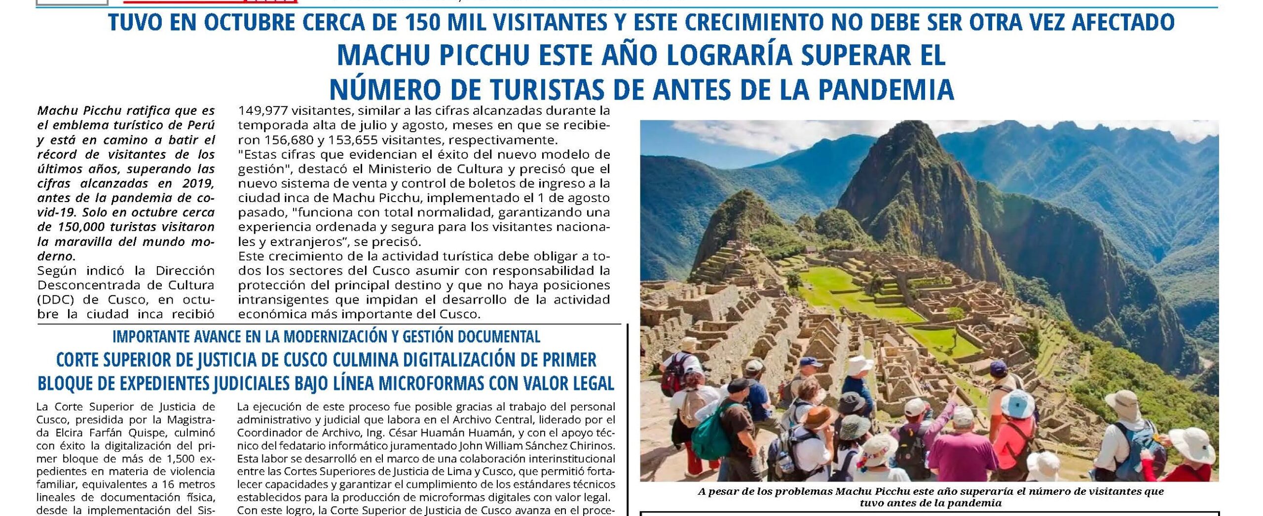 Según la DDC la ciudadela inca de Machu Picchu continúa consolidándose como el principal destino turístico del Perú. Solo en octubre de 2025, recibió 149,977 visitantes, una cifra que iguala los niveles de la temporada alta de julio y agosto, cuando arribaron 156,680 y 153,655 turistas, respectivamente.