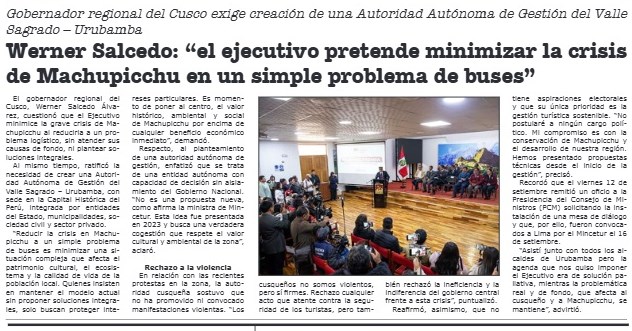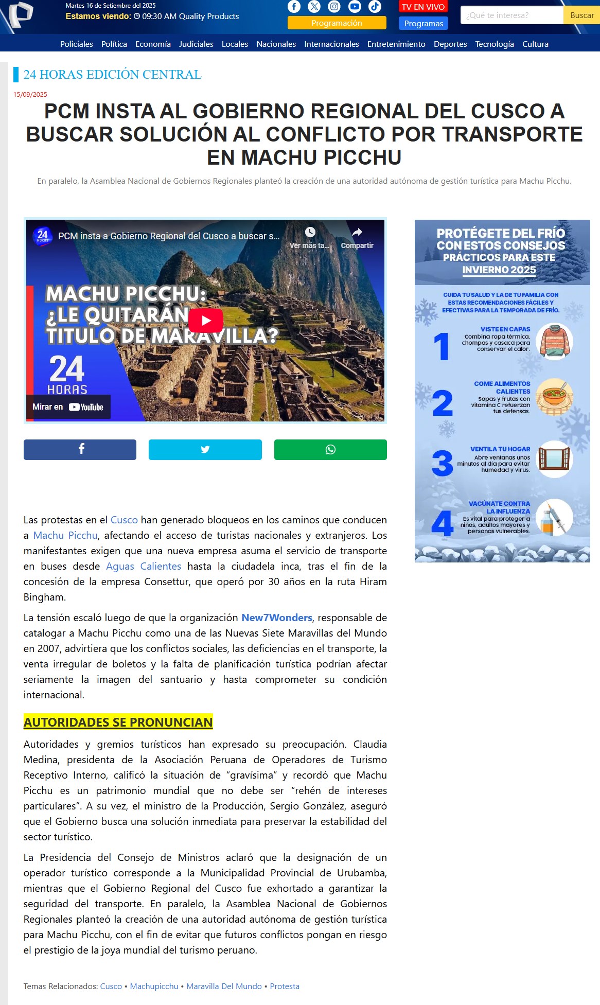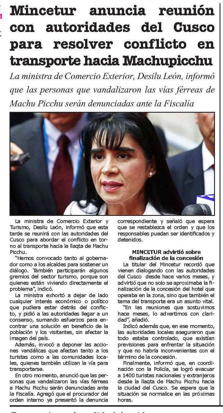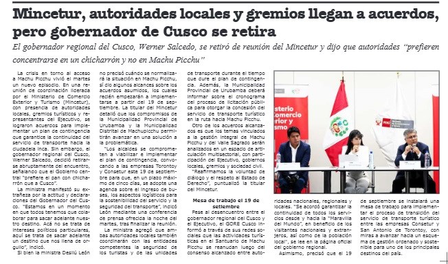 En una reunión de coordinación liderada por el Mincetur con presencia de autoridades y gremios turísticos se lograron acuerdos para implementar un plan de contingencia que garantice la continuidad del servicio de transporte