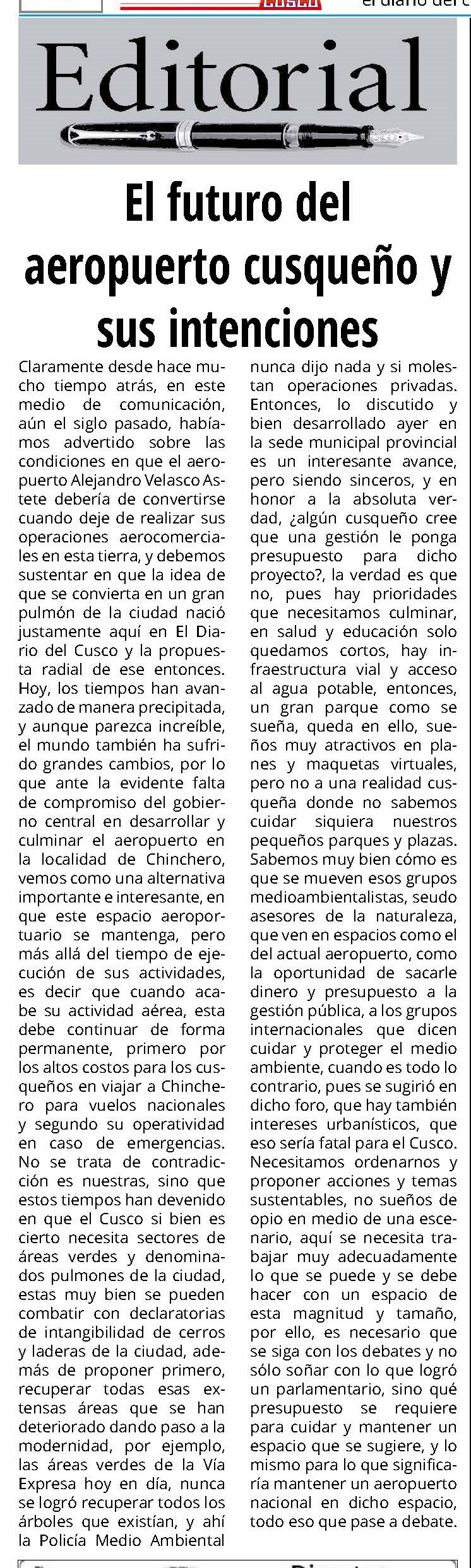 Luego de que se conociera que, en el único aeropuerto de Cusco se ampliaría el horario de operaciones a 22 horas ininterrumpidas surge la petición de que se concluya cuanto antes el aeropuerto de Chinchero cuya construcción y puesta en operatividad fue prolongada pues sería entregado recién el 2028.