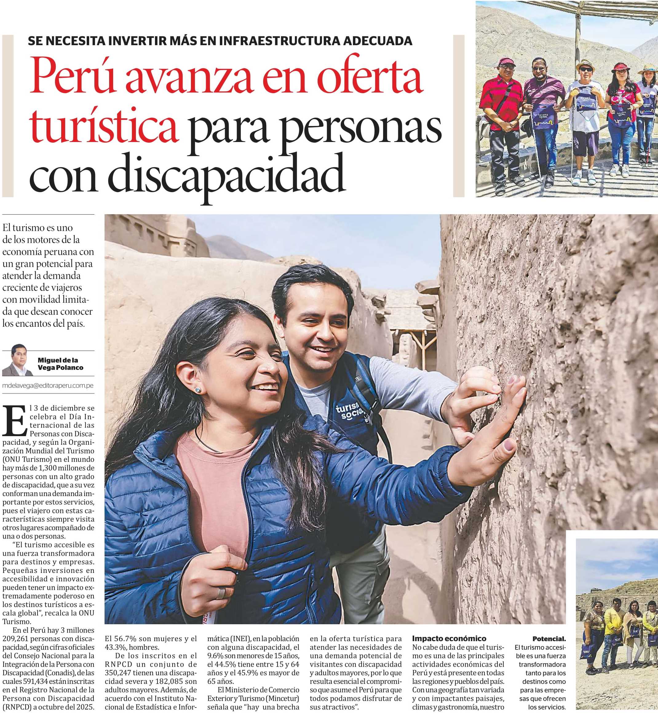 PERÚ AVANZA EN OFERTA TURÍSTICA PARA PERSONAS CON DISCAPACIDAD