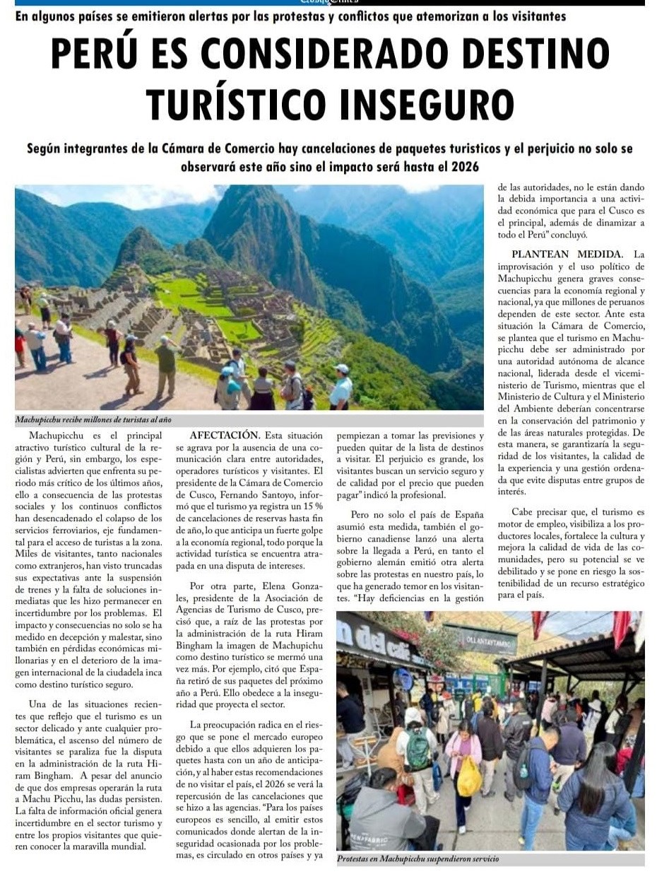 Los especialistas advierten que Machupicchu enfrenta su periodo más crítico de los últimos años, ello a consecuencia de las protestas sociales y los continuos conflictos han desencadenado el colapso de los servicios ferroviarios.