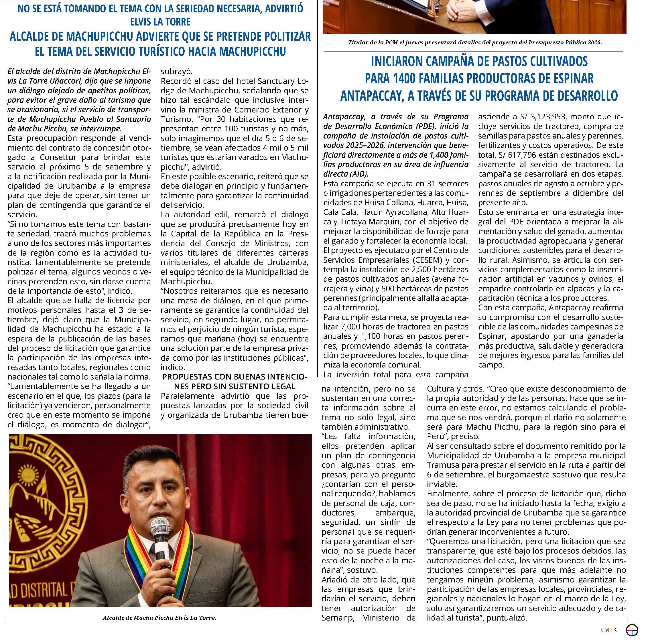 Declaraciones del alcalde de la Municipalidad de Machu Picchu