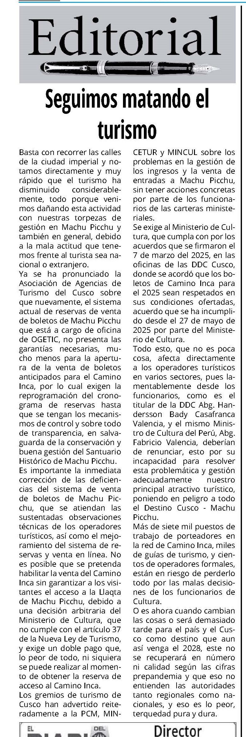 Basta con recorrer las calles de la ciudad imperial y notamos directamente y muy rápido que el turismo ha disminuido considerablemente, todo porque venimos dañando esta actividad con nuestras torpezas de gestión en Machu Picchu y también en general, debido a la mala actitud que tenemos frente al turista sea nacional o extranjero.