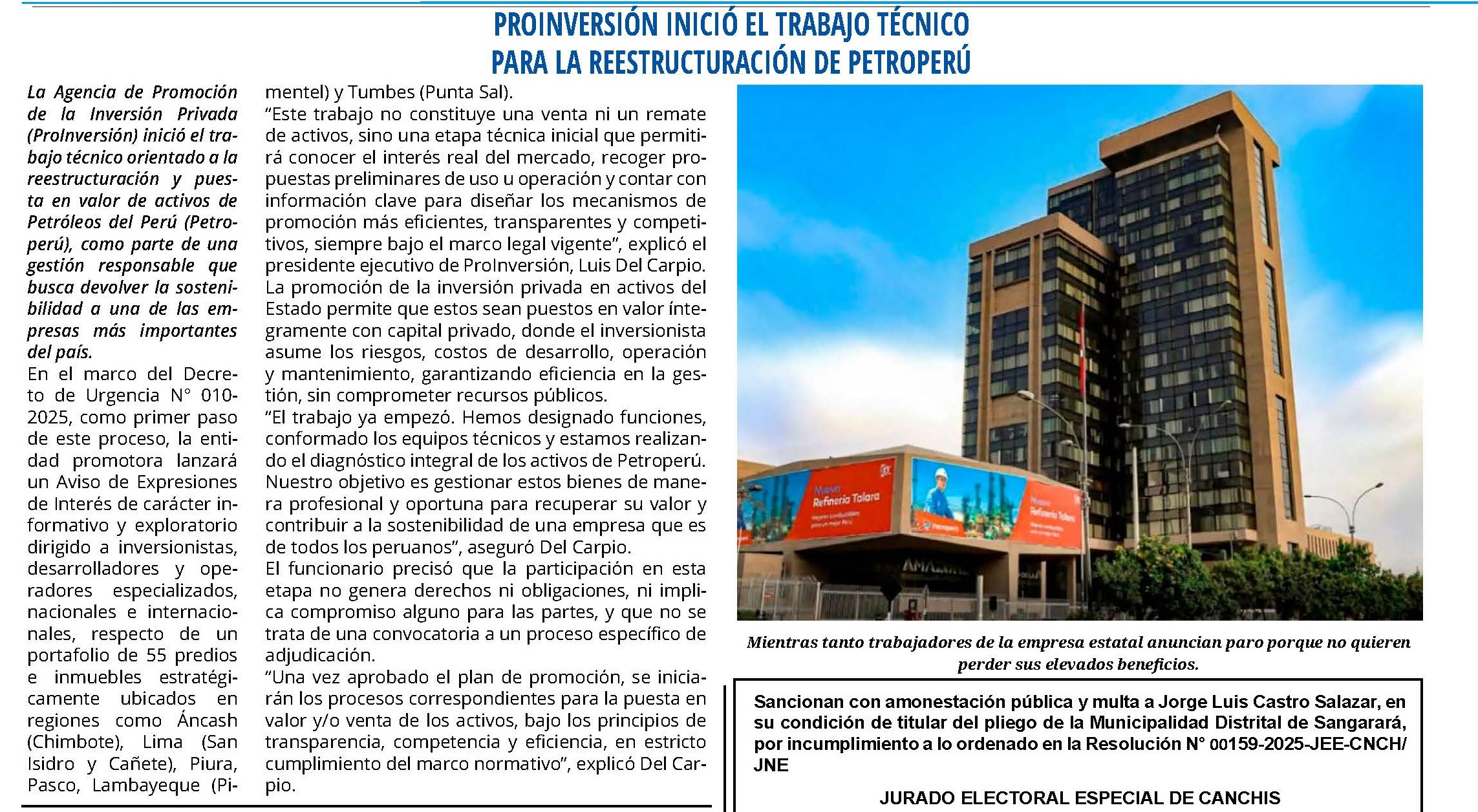 La Agencia de Promoción de la Inversión Privada (ProInversión) inició el trabajo técnico orientado a la reestructuración y puesta en valor de activos de Petróleos del Perú (Petroperú), como parte de una gestión responsable que busca devolver la sostenibilidad a una de las empresas más importantes del país