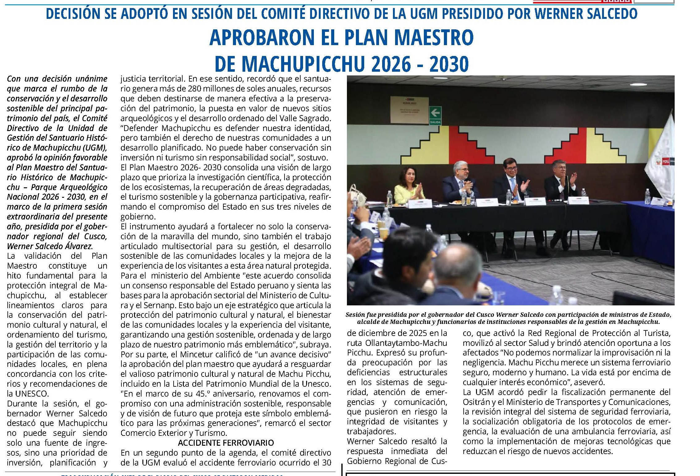 Desde horas de la mañana se viene dando la reunión de la UGM en Lima, para abordar como eje central el plan maestro del santuario de Machu Picchu y el accidente entre Perú Rail e Inca Rail