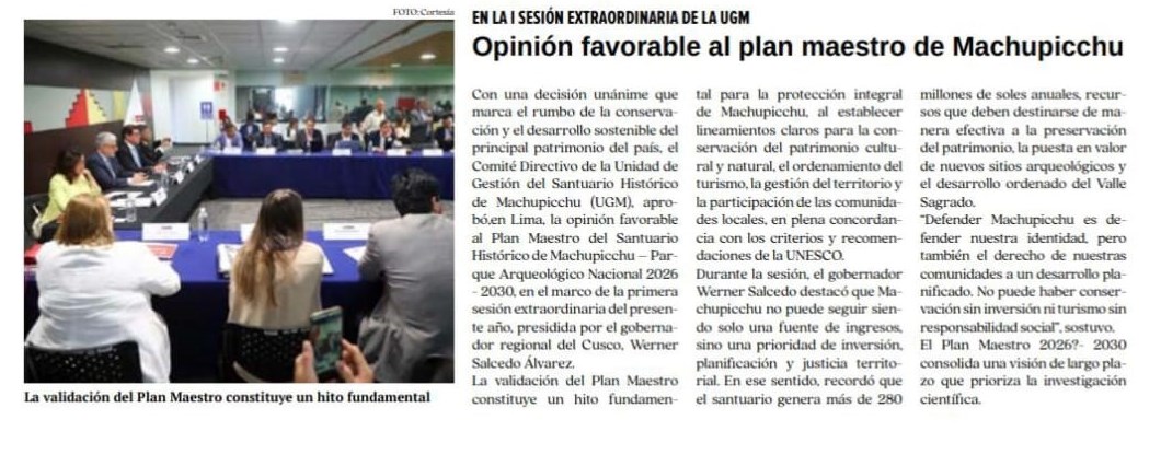La validación del Plan Maestro constituye un hito fundamental para la protección integral de Machupicchu, al establecer lineamientos claros para la conservación del patrimonio cultural y natural, el ordenamiento del turismo, la gestión del territorio y la participación de las comunidades locales, en plena concordancia con los criterios y recomendaciones de la UNESCO.