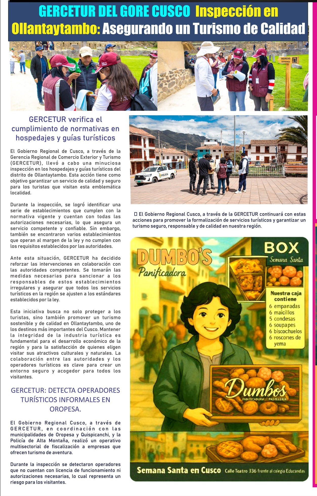 GORE CUSCO INSPECCIÓN EN OLLANTAYTAMBO: ASEGURANDO UN TURISMO DE CALIDAD