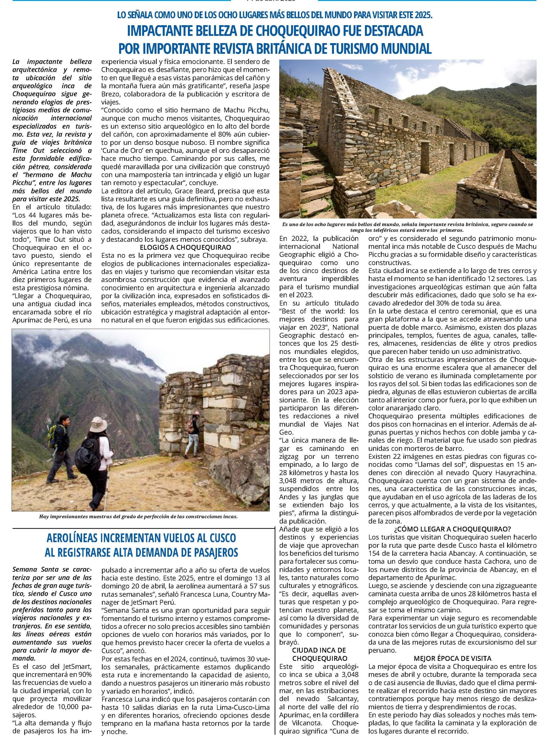 BELLEZA DE CHOQUEQUIRAO FUE DESTACADA POR REVISTA BRITÁNICA DE TURISMO MUNDIAL